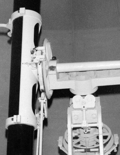 2 – Telescopio rifrattore di Fraunhofer; particolare della colonna contenente il motore elettrico in ascensione retta (foto 1977).