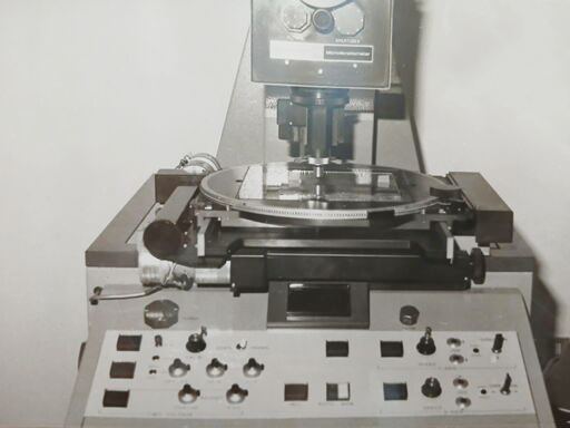 10 – Particolare del microdensitometro (o microfotometro) Boller & Chivens. Sul piatto veniva posta la lastra negativa in esame sulla quale si potevano compiere accurate misure di fotometria fotografica come, ad esempio, lo studio dei profili d’intensità delle righe spettrali (foto 1984).