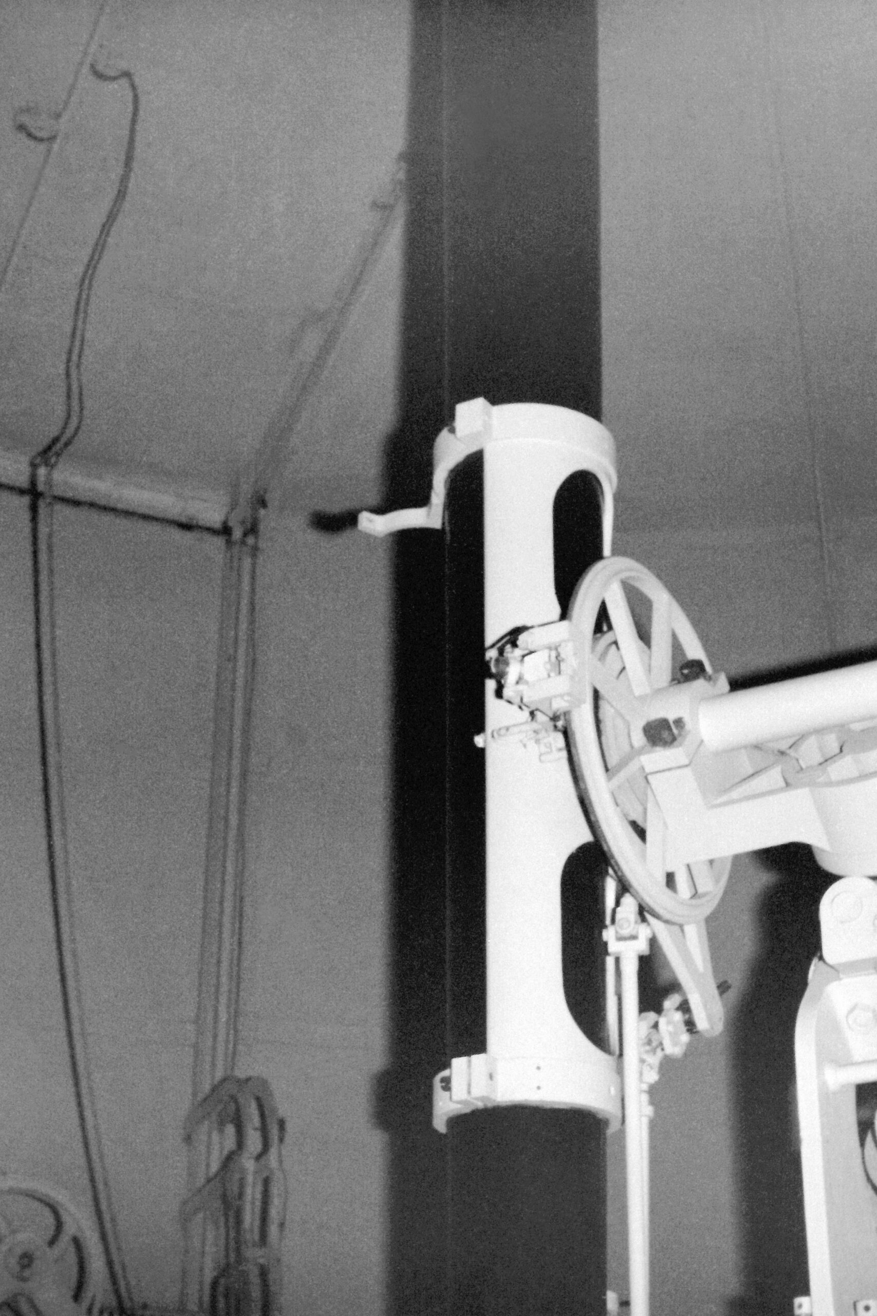 2 – Telescopio rifrattore di Fraunhofer; particolare della colonna contenente il motore elettrico in ascensione retta (foto 1977).